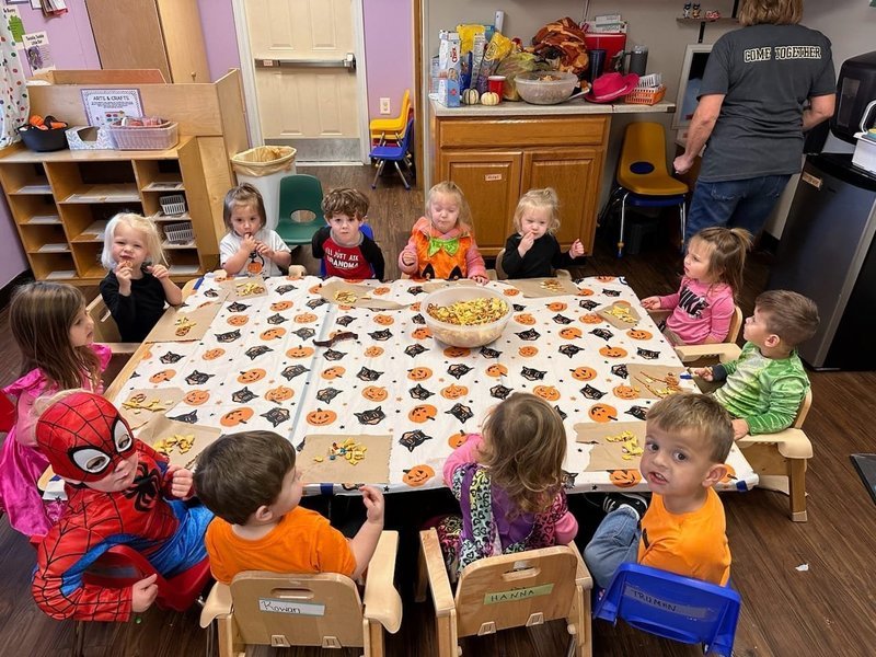 Here's the babies showing off their Halloween spirit and the toddler class had fun making a Halloween trail mix!