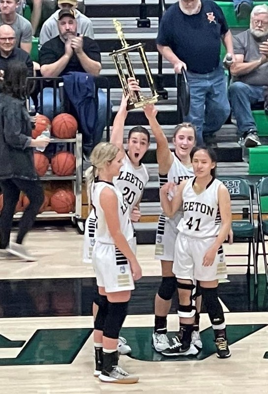 Crest Ridge Tournament was held January 23-28, 2023. Our Ladies Bulldogs defeated Lexington 59-17 Monday evening and Concordia 66-18 Friday to advance to the Championship game Saturday at 6:00 pm. The girls had a great game defeating Holden 64-31 to bring home the championship trophy. The All-Tournament Team was announced and included Leeton Ladies Bailey Fleming and Jadeyn Johnson and tournament MVP, Jordan Crooks. Congrats on a great win!